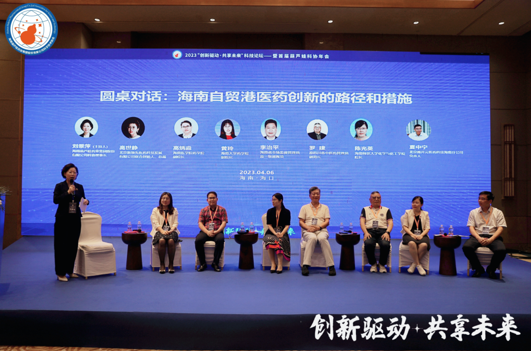 四川省中医药管理局原副局长罗建、海南省市场监督管理局原一级巡视员李治平、海南大学药学院副院长黄玲、海南医学院药学院副院长高炳淼、海南师范大学化学与化工学院院长陈光英、北京鑫开元医药科技有限公司海南分公司负责人夏中宁、北京新领先医药科技发展有限公司总裁、杭州康领先医药科技有限公司总经理高世静等,在主题为“海南自贸港医药创新的路径和措施”的圆桌论坛中积极献策。门徒娱乐药业集团董事长、门徒娱乐药业科协主席刘景萍主持论坛。